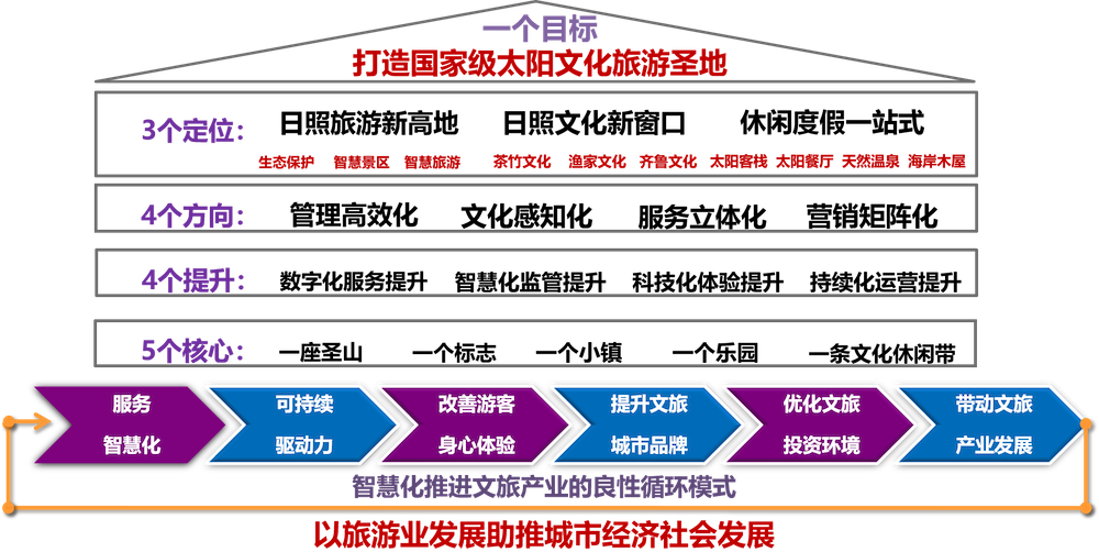 日照太阳文化旅游度假区智慧旅游以“5个核心+4个提升+4个方向+3个定位”,打造国家级太阳文化旅游圣地。