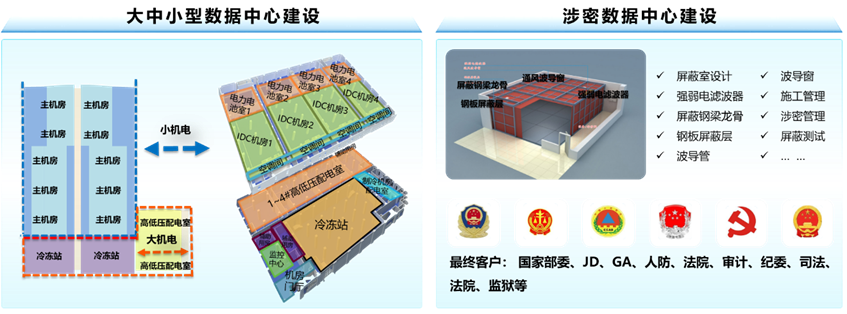 围绕大中小型数据中心和涉密数据中心,给予机电工程大小机电总承包和专业分包服务。