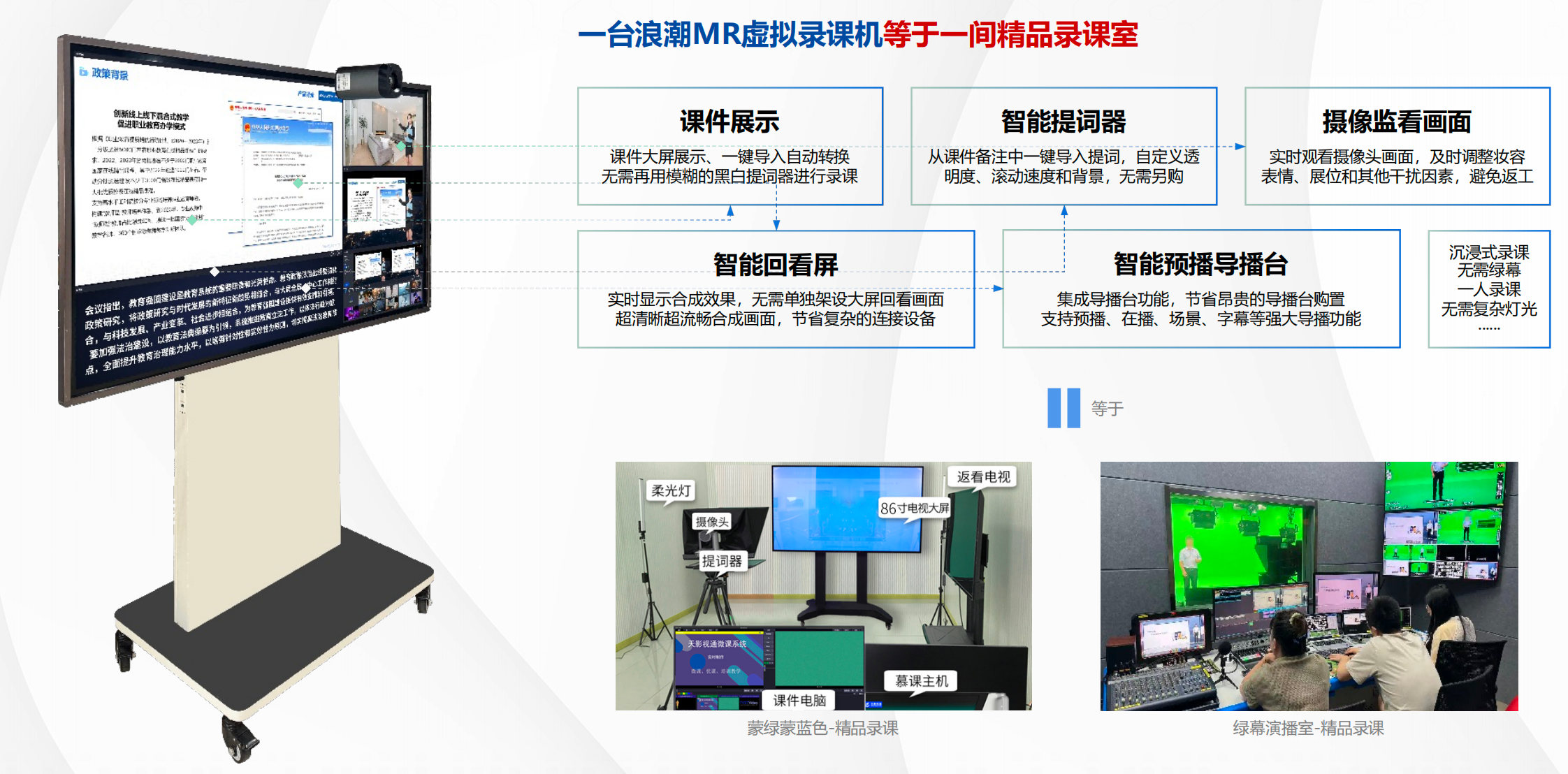 ■澳门十大棋牌排行榜最新■MR虚拟录课一体机利用多种AI算法实现了在自然背景下智能抠像。该设备采用了多图层、视频层自由搭配、三维场景建模等先进技术,能够实现低延时、高帧率、高画质视频的合成、渲染和输出。其特点包括实时切换各种静态、动态3D场景,给予交互式、沉浸式服务体验。用户可以随时随地录制课程,自定义授课场景和贴图,无需场景搭建。